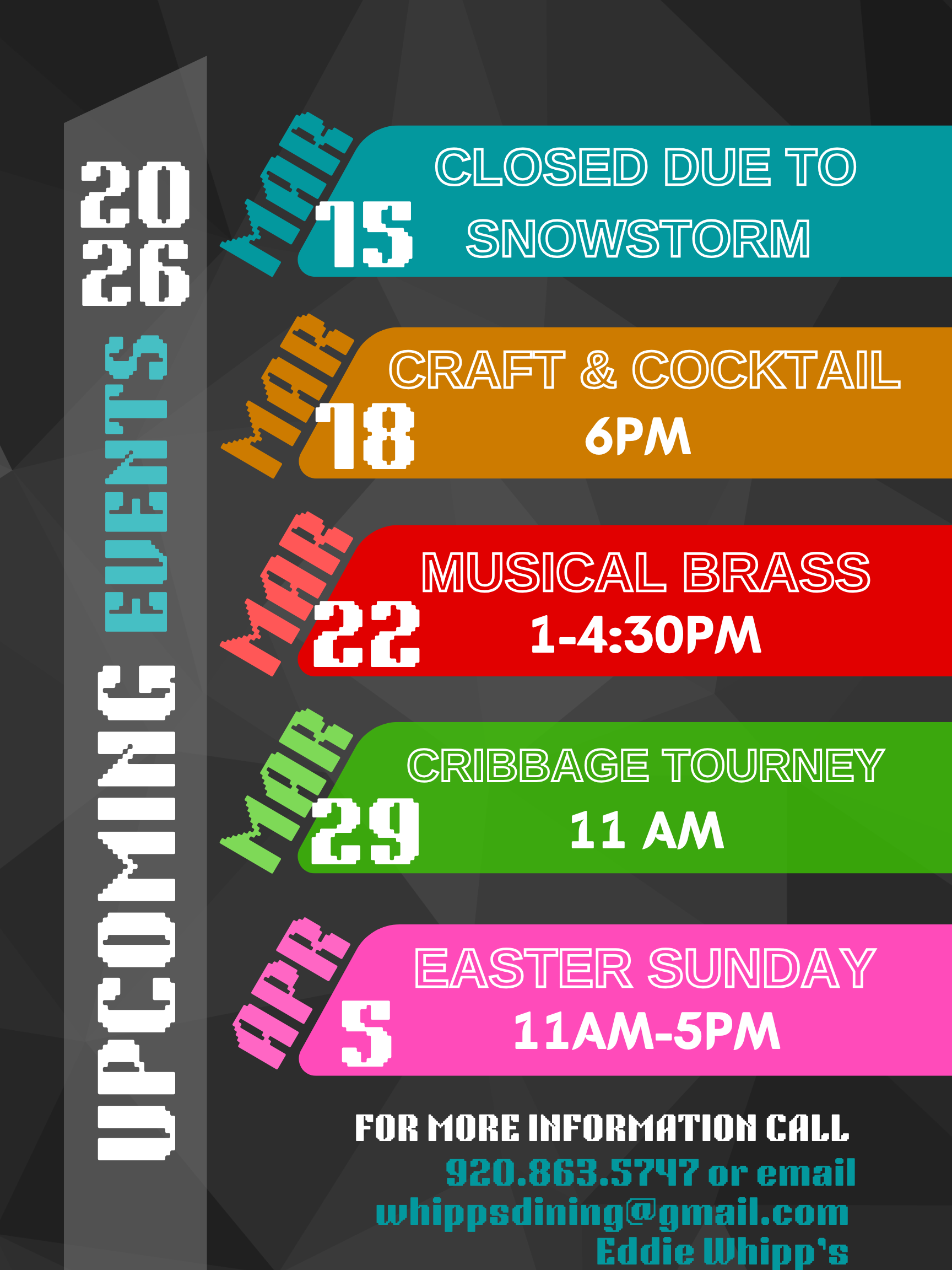 Whipps is a great place for your Holiday Parties, Dances or other special events. With a great room, bar as well as in-house food options, it’s really hard to go wrong. Whipps features two spacious, full-service bars, a large dining room and separate elegant ballroom.